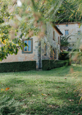 Beim Betreten durch die gelbe Flügeltüre steht man direkt im großen Saal - an der langen Tafel finden gesellige Essen statt, in der Küche fließen Kochen und Plaudern nahtlos ineinander. Im Kaminzimmer kommt man in der kühleren Jahreszeit gemütlich zusammen. In den oberen Stockwerken befinden sich mehrere Schlafzimmer. Aus den Fenstern öffnet sich der Blick über den Park und in das Tal. Â